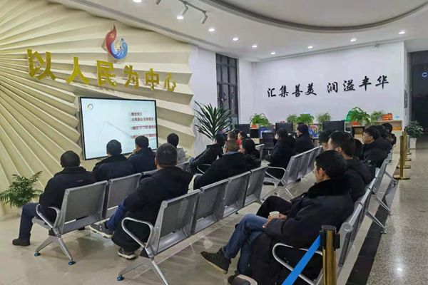 宣威市豐華街道黨政班子成員、社區書記30余人,在豐華街道社區服務中心集中收看專題片第一集。(徐召用 攝)