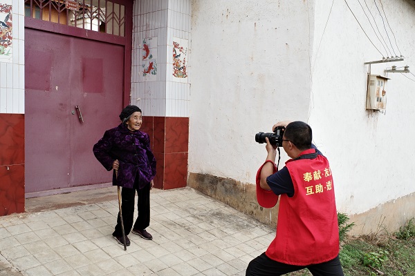 “小行為”帶來“大感動”。祥云縣文聯的志愿者們帶著攝影器材走進村寨,為700多名老人提供上門拍照服務,定格最美夕陽紅。(李雪 攝)
