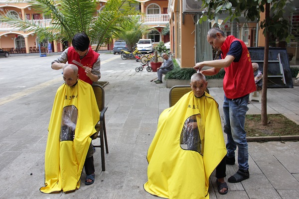 溫暖人心從“頭”開始。河口縣志愿者為孤寡老人提供理發服務,“咔嚓咔嚓……”,幾分鐘后老人原本凌亂的頭發變得利落。(梁橋 攝)