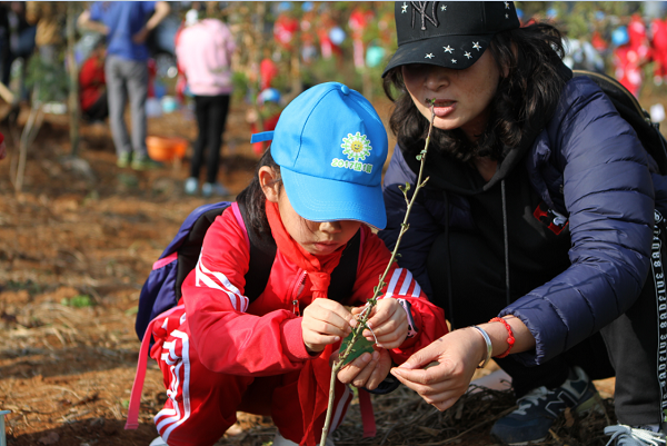 又到一年植樹節,文山市實驗小學的小朋友們在父母的陪伴下來到林場,種下一棵棵小樹,并掛上自己的許愿牌,希望小樹快快長大,早日成材。(王銘堅 攝)
