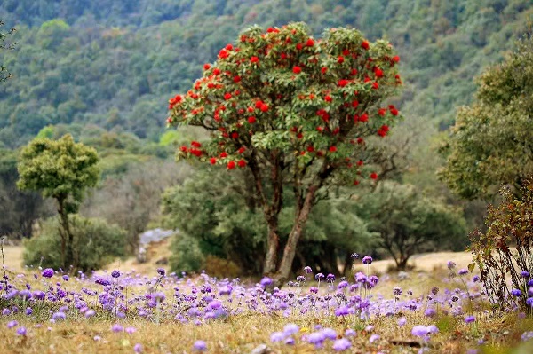 春風(fēng)和煦,一陣暖風(fēng)吹過,大樹杜鵑開得熱烈,滿山遍野的迎春花也紛紛探出頭來,星星點(diǎn)點(diǎn),把山野點(diǎn)綴得如夢(mèng)如幻、生機(jī)盎然。(楊新洲 攝)