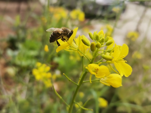 春風(fēng)徐來,花香四溢,引得蜜蜂也開始“忙碌”起來,穿梭花間,馬不停蹄地采蜜。(夏增雯 攝)