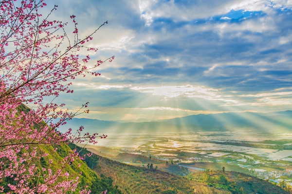 在瀘西縣的鄉(xiāng)村田野,成片的梨花、桃花、櫻花……爭奇斗艷,給大地披上了美麗的盛裝,如詩如畫,讓人流連忘返,心曠神怡。(黃光明 攝)