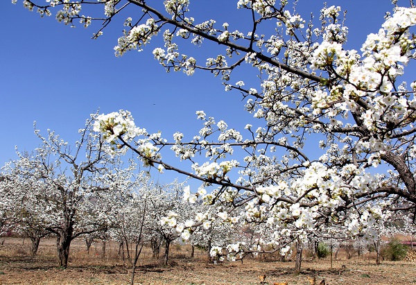 春意懶散,春花爛漫,這時(shí)正是梨花盛開的季節(jié),雪白的梨花掛滿枝頭,微風(fēng)拂過,宛如穿著縞素的玉女翩翩起舞。(李燦美 攝)