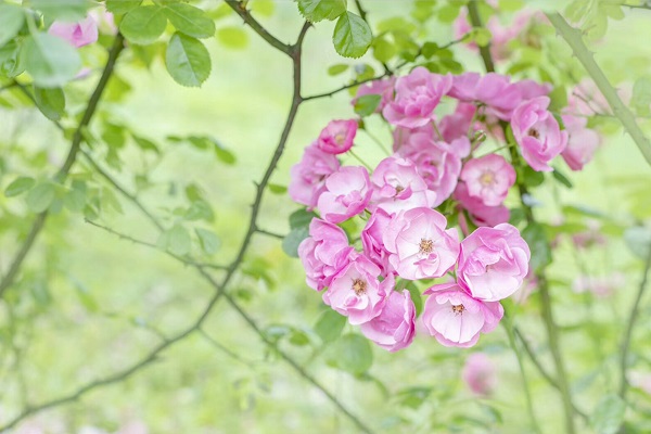 嫩綠的枝丫上,一朵朵鮮艷的薔薇花競(jìng)相開放,給春天涂上艷麗的色彩。(周曉紅 攝)