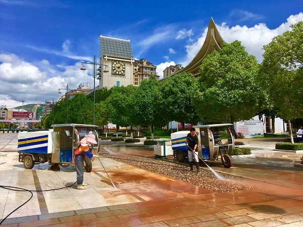 曲靖市紀委監委機關干部利用業余時間,經常性到機關辦公區、街道、生活小區打掃衛生、清除衛生死角,用實際行動呵護干凈整潔的環境。(徐天德 攝)