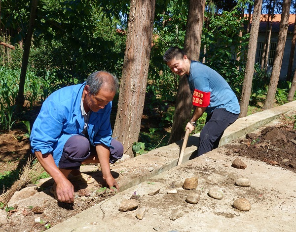 梁河縣紀委監委黨員干部積極參與愛國衛生運動,與群眾一同清垃圾。(李佳佳 攝)