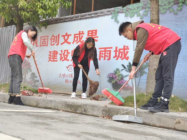 龍陵縣紀委監委以文明實踐為依托,以志愿服務為載體,到包保社區開展衛生大掃除活動,用實際行動助力愛國衛生運動“7+1”專項行動。(王龍芹 攝)