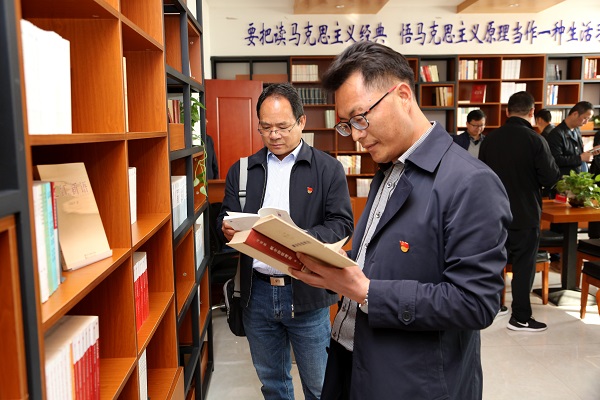 “人之進學(xué)在于思,思則能知是與非。”閑暇的午后,紀(jì)檢監(jiān)察干部走進黨建書苑,通過“每日一讀”提升自我。(黃永美 攝)