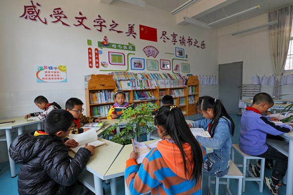 陸良縣著力推進山區(qū)教育提質(zhì)發(fā)展,秉承打造“書香校園”的理念,為邊遠山區(qū)農(nóng)村學(xué)校籌建圖書室、閱覽室,不斷豐富圖書資源,讓山區(qū)的孩子愛上讀書、愛上學(xué)習(xí)。(王勇 攝)