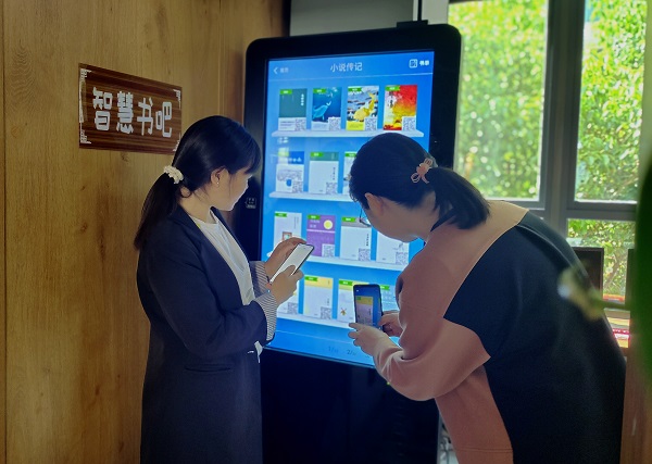 “智慧書吧”讓書香觸手可及,掃一掃二維碼,隨時隨地都能享受文化大餐。(王龍芹 攝)
