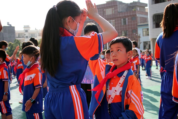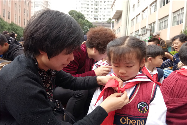“我們是共產(chǎn)主義接班人,繼承革命先輩的光榮傳統(tǒng)……”這個(gè)“六一”,他們成為光榮的少先隊(duì)員。(徐國芳 攝)