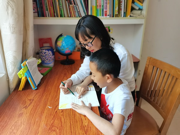 剛下班的媽媽認(rèn)真傾聽孩子朗讀新學(xué)會(huì)的課文,不時(shí)幫助孩子糾正著發(fā)音。(李正麗 攝)