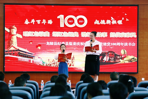 紀(jì)檢監(jiān)察干部帶著孩子在讀書會(huì)上朗誦《聽我說謝謝你》,字里行間飽含著父母殷殷的愛意,清脆稚嫩的聲線表達(dá)著女兒甜甜的感謝。(侯云鵬 攝)
