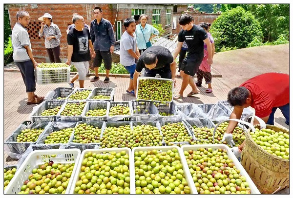 夏至前后,正是李子成熟的時節(jié),果農們忙著采摘、分裝果實。(張相昆 攝)