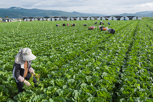 夏至正是農忙時,瀘西縣境內的農民們在田間地頭采收蔬菜。(倪建斌 攝)