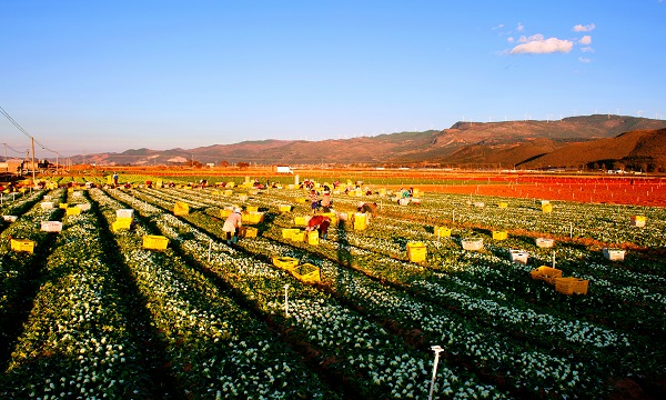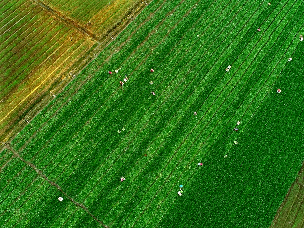 春盡夏至,正是萬物生長好時節(jié)。在光照充足、溫度適宜、雨水充沛的夏日里,田里的蔬菜茁壯成長,基地里人們忙著清除雜草。(蘇金泉 攝)