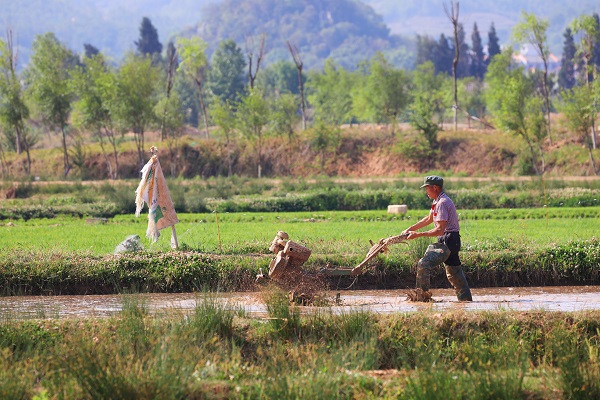 夏至已至,丘北縣的農民在綠油油的農田里勞作。(陳義富 攝)