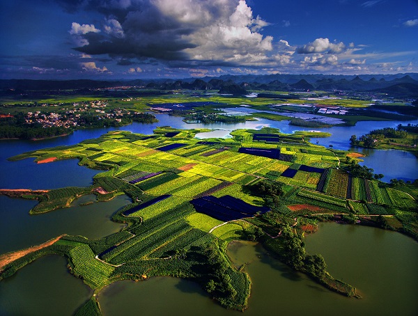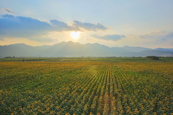 天氣漸涼,云貴高原上的千畝葵花進入盛花期,金燦燦的花朵迎著陽光,把初秋的田野染得金黃。(方俊 攝)