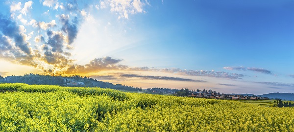 朝霞燦照,炊煙四起,花海漫山……對于騰沖市清水佤族人民來說,這就是幸福。(李恒宇 攝)