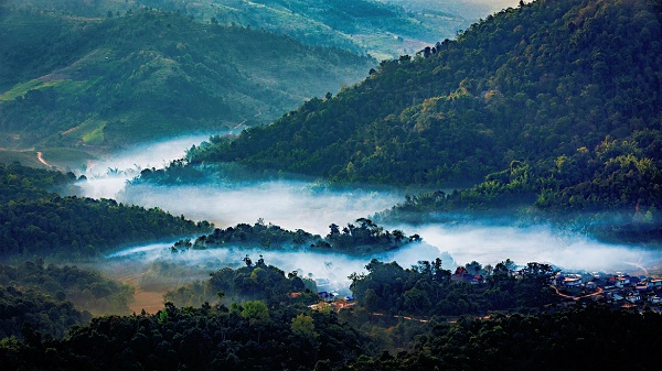薄霧蒙翠峰,碧紗罩玉容。初秋清晨,萬(wàn)籟俱寂,破曉的晨光喚醒沉睡的生靈。(楊淑娟 攝)