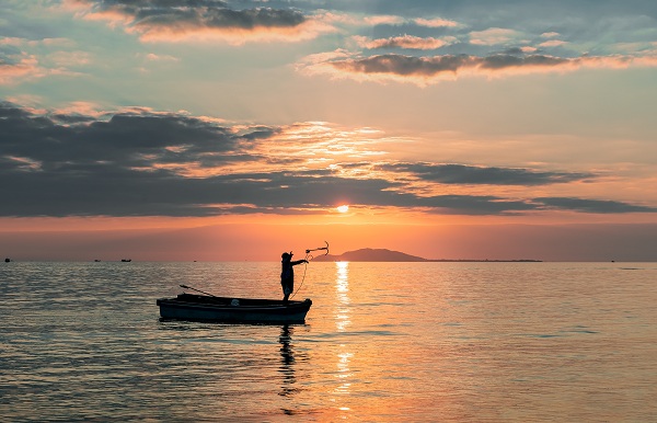 天氣漸涼白露天,湖光山色靜待月,一葉輕舟戀漁夫,共待天明魚(yú)滿倉(cāng)。(吳名氏 攝)