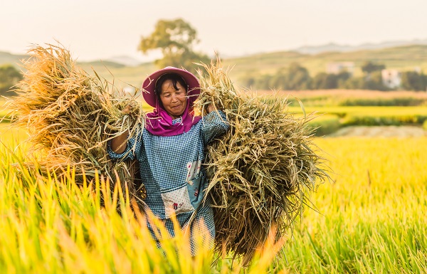 白露割谷子,霜降摘柿子。白露時(shí)節(jié),農(nóng)民們正忙著收割稻谷,豐收的喜悅溢于言表。(張正余 攝)
