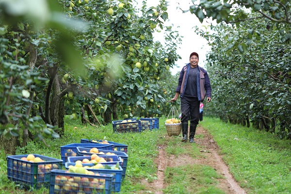 白露時(shí)節(jié),馬龍區(qū)的果園里,甘甜如蜜的梨掛滿枝頭,成熟的氣息彌漫果園。果農(nóng)們忙著采摘、搬運(yùn),又是一個(gè)豐收年。(方俊 攝)