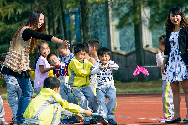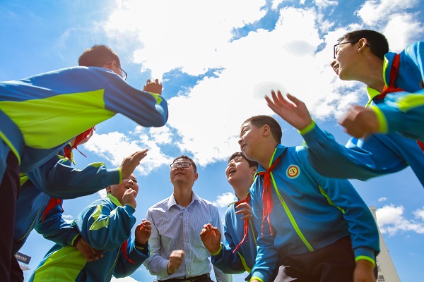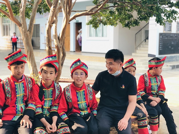 亦師亦友,在講臺(tái)上他是老師,走下講臺(tái)他就是孩子們的好朋友、好伙伴、好搭檔,與孩子們一起學(xué)習(xí)、一起游戲、一同描繪七彩童年。(申時(shí)興 攝)