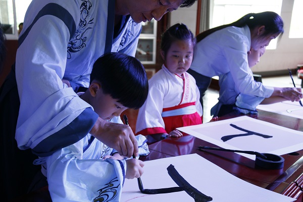 安寧市某中學(xué)一位老師正在手把手教學(xué)生練習(xí)書法,上好傳統(tǒng)文化課,讓學(xué)生從小樹立正確的價(jià)值觀,培養(yǎng)高尚的情操。(賈建榮 攝)
