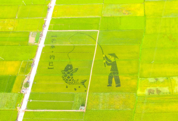 春種一粒粟,秋收萬(wàn)顆子。九月的梁河縣印盒山,村民以稻田作畫(huà)布,水稻為顏料,繪出豐收的景象。(何成江 攝)
