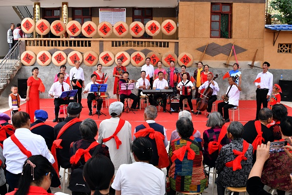 重陽(yáng)佳節(jié),文山市組織八十歲以上的老人觀看文藝表演,向他們致以節(jié)日的問(wèn)候和誠(chéng)摯的祝福。(王銘堅(jiān) 攝)