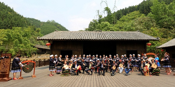 九九重陽(yáng)節(jié),濃濃敬老情。在曲靖市布依村寨里,大家身著節(jié)日盛裝,通過(guò)民間曲藝“八音坐唱”的形式,共同歡度節(jié)日。(方俊 攝)