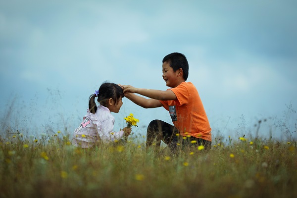秋高氣爽,正是登山賞菊、飽覽秋色之美的大好時機,小兄妹倆跟著家人登高游玩,在開滿野菊花的山頂上盡享童年快樂時光。(王勇 攝)
