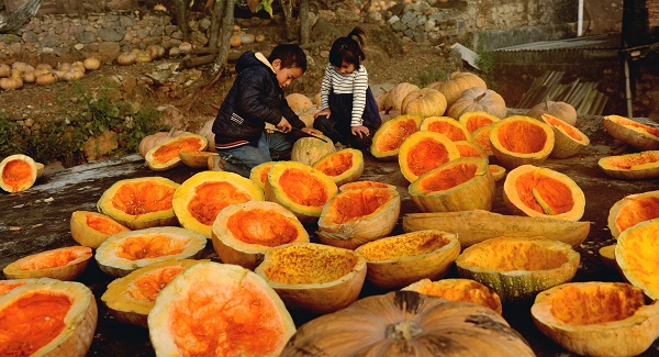 “滿眼金黃色,處處有果實。”紅河縣一村莊的空地上,滿滿當當的南瓜給村莊染上了金黃的色彩,豐收的喜悅浮現在孩子的笑臉上。(王崢 攝)