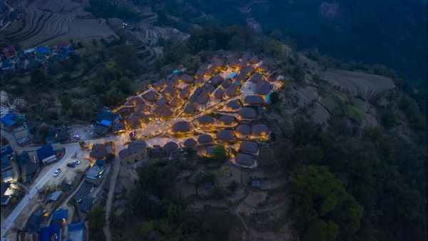 深秋的夜夾著涼爽的微風,蹣跚著腳步悄悄造訪瀾滄縣雪林鄉左都大寨。蟈蟈、蟋蟀和沒睡覺的青蛙,在草叢中、池塘邊輕輕吟唱,這一切都在這不尋常的夜里顯得格外迷人。(邵鴻雁 攝)