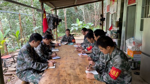 普洱市紀(jì)委監(jiān)委第四批“強(qiáng)邊固防”突擊隊(duì)進(jìn)駐孟連縣富巖鎮(zhèn)大曼糯村后成立臨時黨支部,充分利用支部主題黨日活動,組織黨員、突擊隊(duì)員、民兵黨員傳達(dá)學(xué)習(xí)黨的十九屆六中全會精神。(曹楊 陳航 攝)