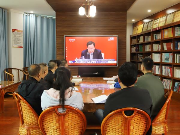 孟連縣紀(jì)委監(jiān)委干部第一時間通過集中學(xué)原文和分組收聽收看新聞聯(lián)播、新聞發(fā)布會等,全面學(xué)習(xí)全會最新要求,深刻領(lǐng)會全會精神實(shí)質(zhì)。(劉松琳 攝)