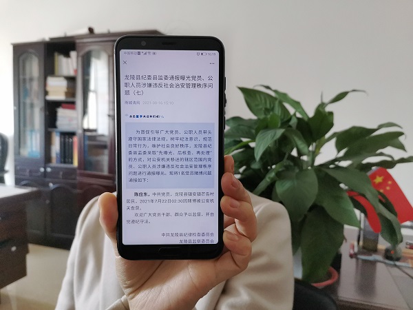 縣紀委監委利用縣紀委監委網站、“雨城清風”微信公眾號、公文交換平臺等通報曝光典型案例,強化反面教材的警示、教育和震懾功能,達到曝光一人、震懾一批、教育一片的效果。(馬斯婷 攝)