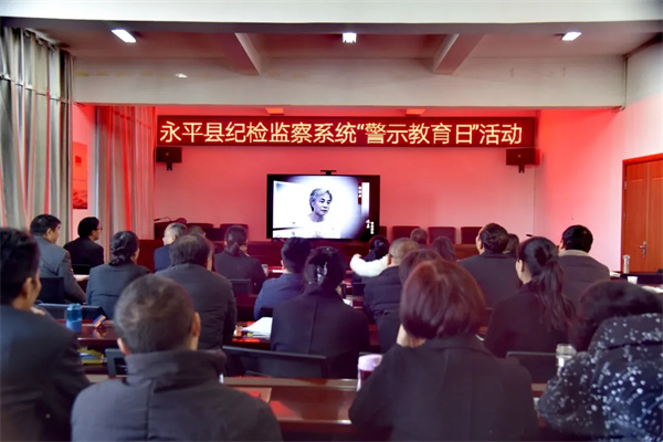 永平縣紀委監委組織紀檢監察干部觀看警示教育片。