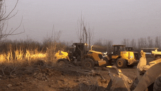 1月13日14時,前期工作人員即抵達現場,進行場地規劃和人員防疫、后勤保障等分工,編排人員輪班計劃。16時,兩家單位人員和機械陸續到位,立即開展場地清表。圖為1月13日,中鐵十四局集團大型機械設備在現場集結(中國鐵建供圖)