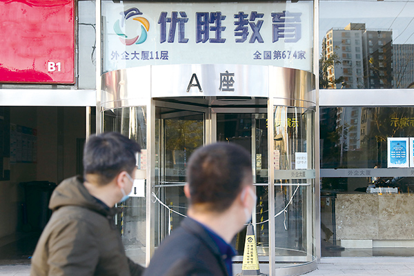 2020年10月18日,有家長(zhǎng)到在線教育機(jī)構(gòu)優(yōu)勝教育北京總部辦理學(xué)費(fèi)退費(fèi)時(shí),發(fā)現(xiàn)其總部已經(jīng)人去樓空。11月15日,優(yōu)勝教育承認(rèn)公司資金鏈斷裂,但多地已開展補(bǔ)償,初步統(tǒng)計(jì)補(bǔ)償2萬(wàn)余人9000余萬(wàn)元。圖為北京一處優(yōu)勝教育的培訓(xùn)中心大門緊閉,內(nèi)部已經(jīng)搬空。(圖片來(lái)源:人民視覺)