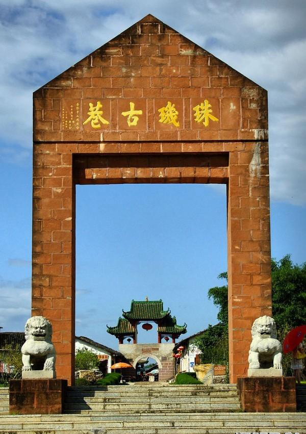 珠璣巷,關于這個地名的由來,明清之交的番禺人屈大均提出了一種說法,他說自己的祖先多從南雄珠璣巷來,北宋開封府祥符縣中就有一條珠璣巷。北宋滅亡,一批朝臣逃到了臨安,一批朝臣逃到了嶺南,在南雄落腳,為了不忘家鄉,就把聚居的地方命名為珠璣巷。南雄珠璣巷之所以成為其落腳之地,得益于珠璣巷的地理位置,唐朝有名的詩人張九齡曾開鑿梅關古道,這條道路是通往嶺南的必經之路,翻越梅嶺,進入南雄,首先到達的就是珠璣巷。