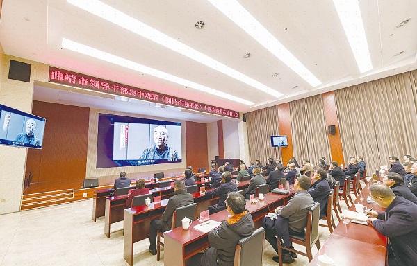 圖為云南省曲靖市組織領導干部召開警示教育大會,集中觀看反腐警示專題片《圍獵:行賄者說》,為黨員干部剖析圍獵機理,總結蛻變者遭受圍獵的原因和教訓。徐天德  攝