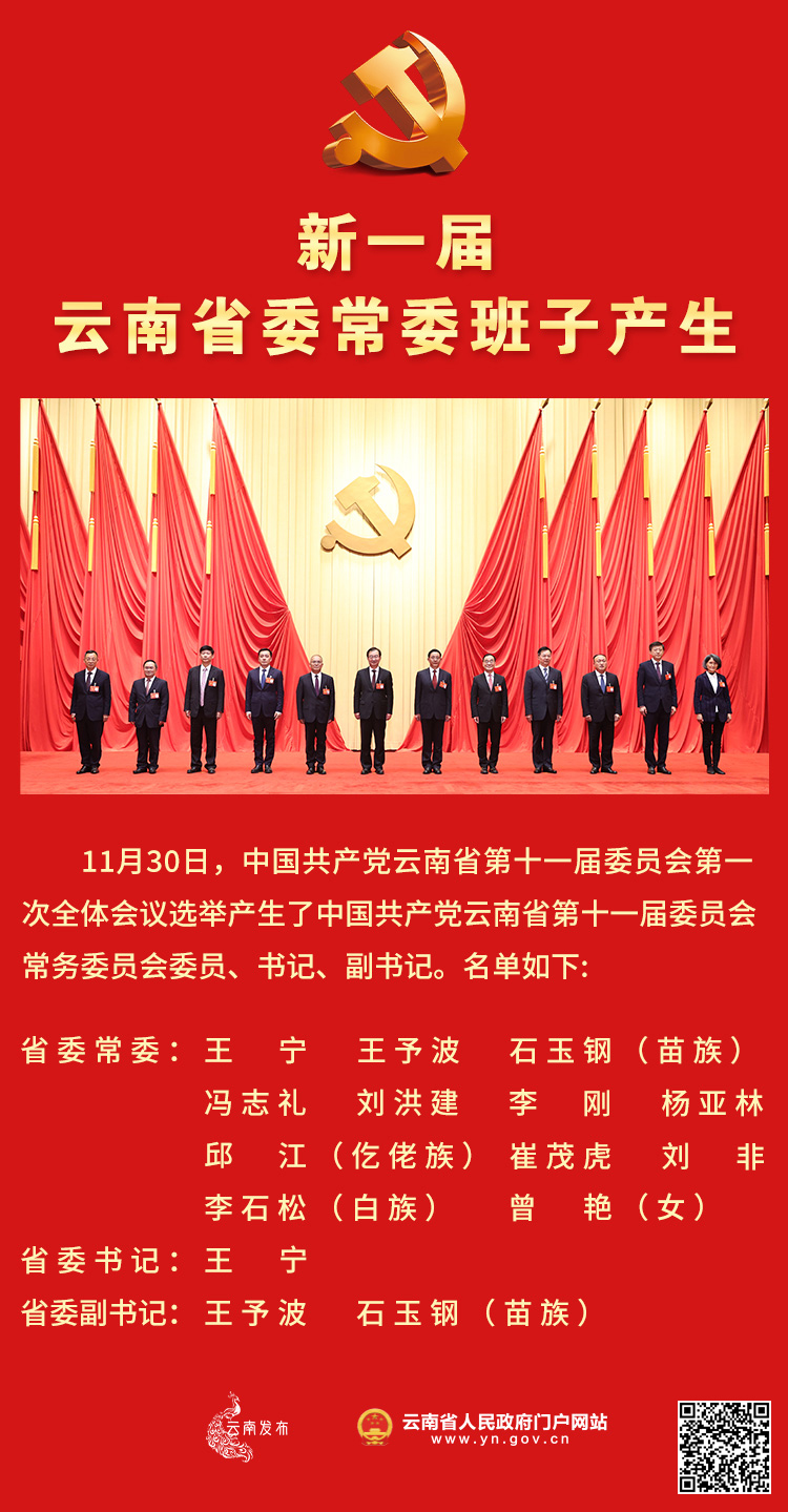 新一屆云南省委常委班子產生