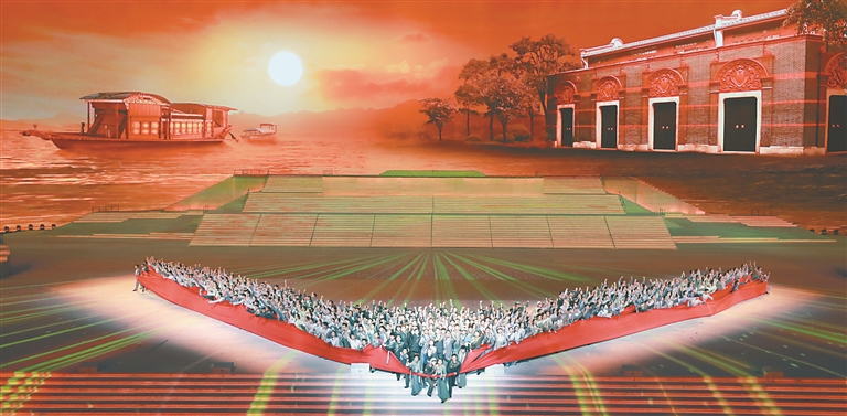 6月28日晚,慶祝中國共產(chǎn)黨成立100周年文藝演出《偉大征程》在北京國家體育場盛大舉行。這是戲劇與舞蹈《破曉》。新華社記者 龐興雷 攝