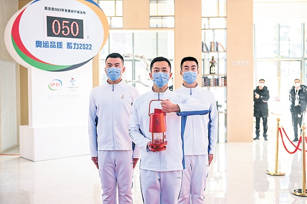 12月16日,在北京2022年冬奧會倒計時50天之際,北京冬奧會火種第四場展示活動在北京舉行,并向社會公眾完全開放,希望讓更多民眾近距離領略取自希臘奧林匹亞的冬奧會火種,共同感受北京冬奧會火種燈、火炬、火炬手制服所彰顯的豐富文化內涵。圖為護衛人員手持火種燈步入展示活動現場。新華社記者 彭子洋 攝