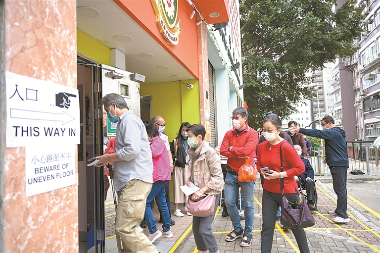 12月19日上午8時30分,在香港油麻地街坊會學校投票站,陸續有選民在工作人員指引下進行投票。(圖片來源:人民視覺)