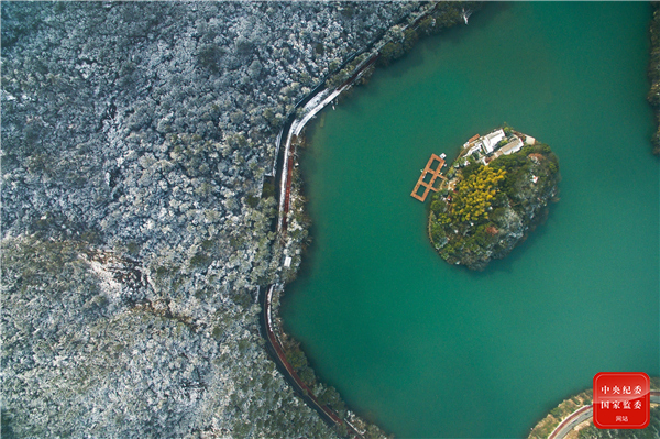 輕盈的雪花緩緩落下,為靜謚的山林披上素雅的頭紗,一半翠湖一半“白紗”林,風光獨好。(浙江省桐廬縣紀委監委供 高尚濤 攝)