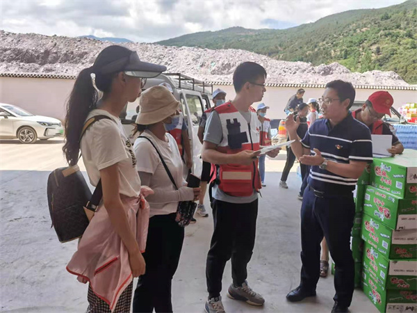 漾濞縣紀委監委工作組在查看紅十字會物資入庫出庫情況